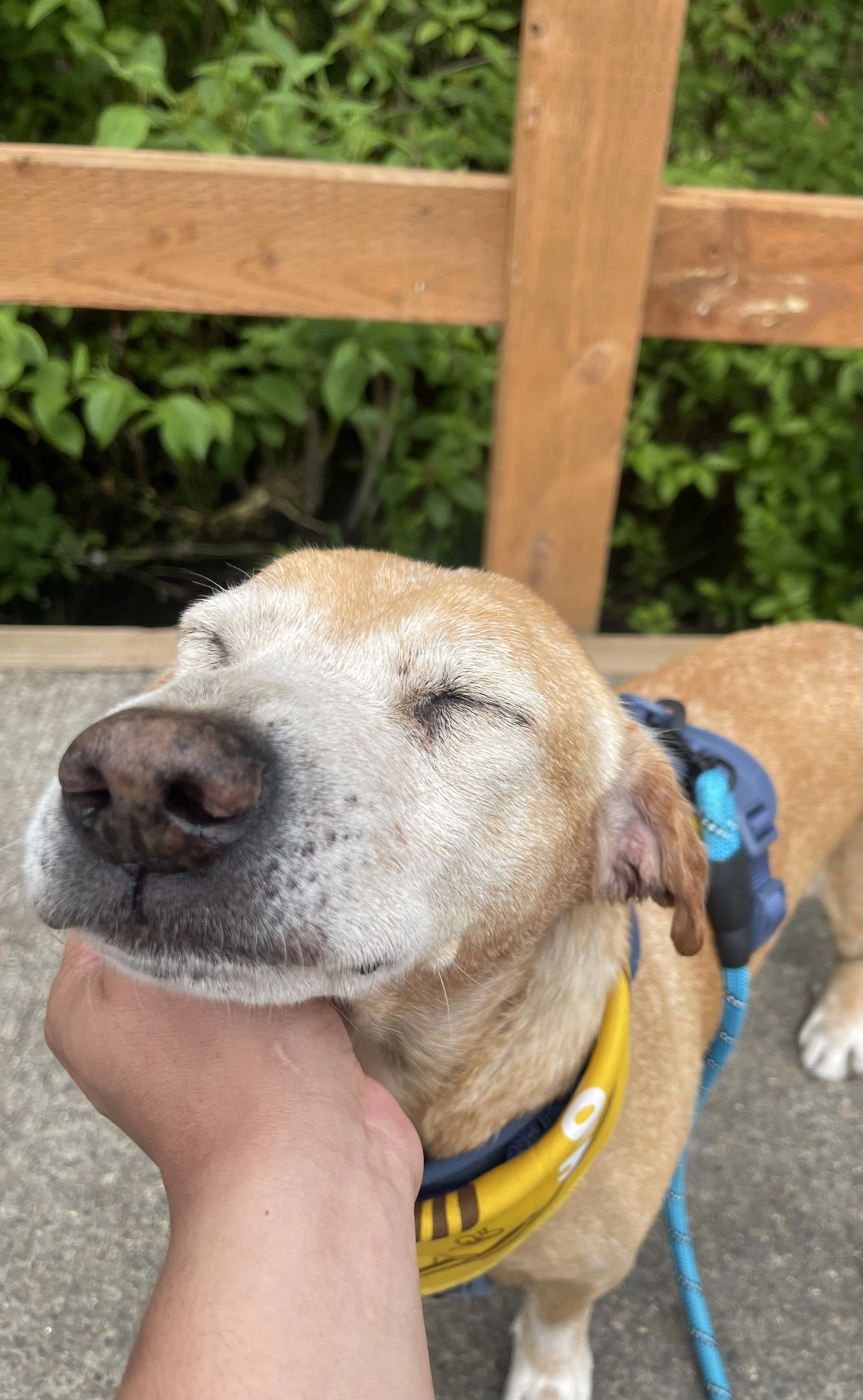 Taco (also known as Taquito) is a thirteen-year-old lab-terrier mix, who was rescued from the pound after stealing his mom's heart. Taco loves playing with stuffed animals and receiving his treats via frozen lick mats. He has claimed ownership of the household couch, but you can occasionally spot him sunbathing on the balcony. When outside, Taco enjoys long walks and visiting dog-friendly craft stores with his mom.